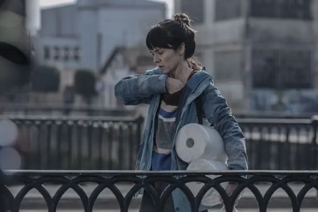 Ese espacio —la margen izquierda, la periferia industrial, la memoria de un esplendor perdido— es el verdadero protagonista de la película. Y sobre él se despliega la historia de Irune, una mujer que vive rodeada de gente pero sin contacto, que busca desesperadamente una conexión en un mundo que parece haber olvidado cómo tocarse.